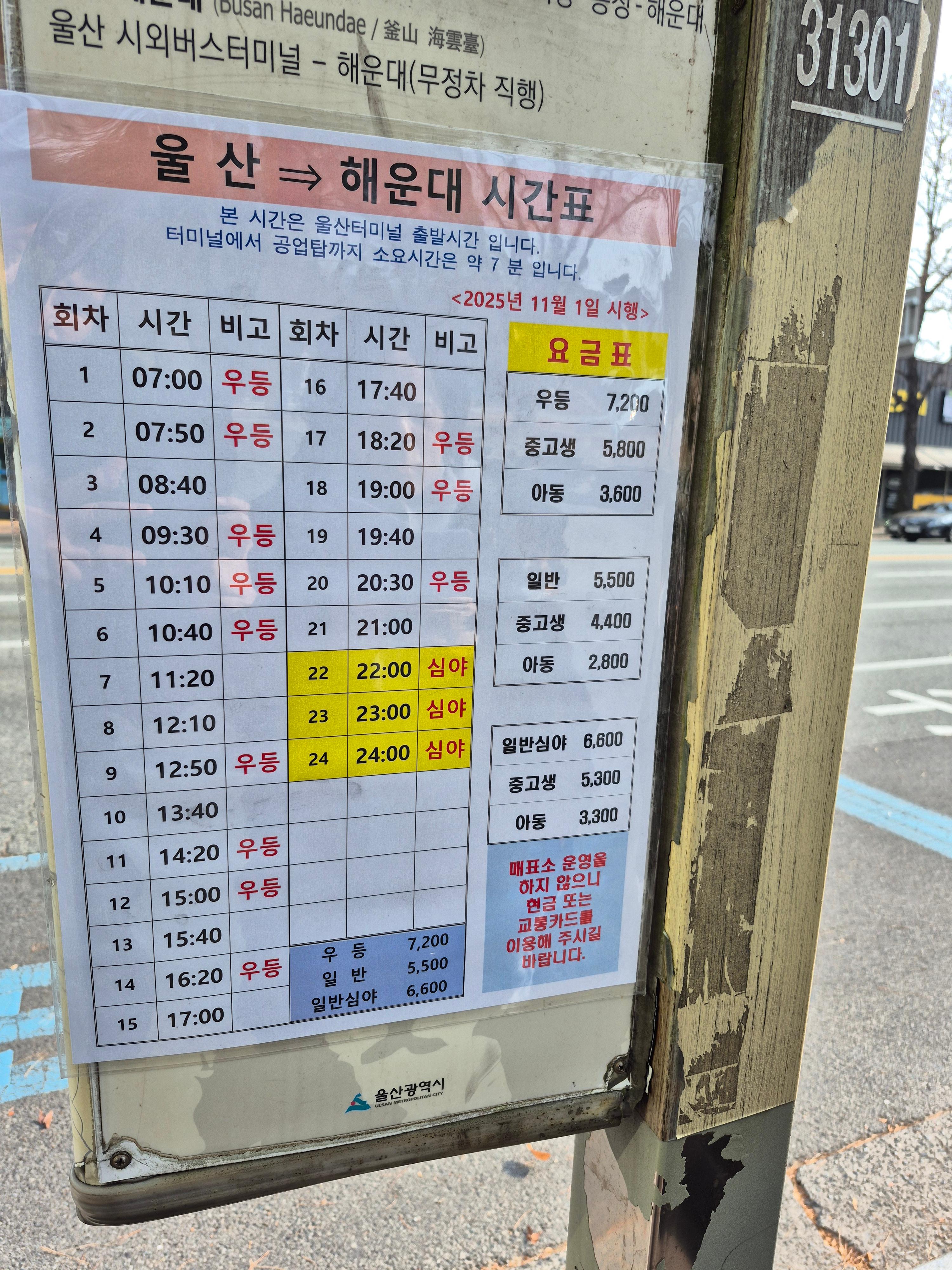 사진 속 시간표는 '울산 시외버스터미널 출발 기준'입니다.